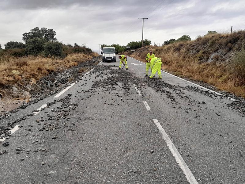 Varias carreteras de la Red Provincial se han visto afectadas por las fuertes tormentas de las últimas veinticuatro horas; algo que ha obligado a los equipos de Infraestructura y Obras del Área de Acción Territorial de la Diputación a centrar sus esfuerzos en retirar obstáculos de las carreteras y limpiar las cunetas para garantizar el tránsito y la seguridad viarias.
