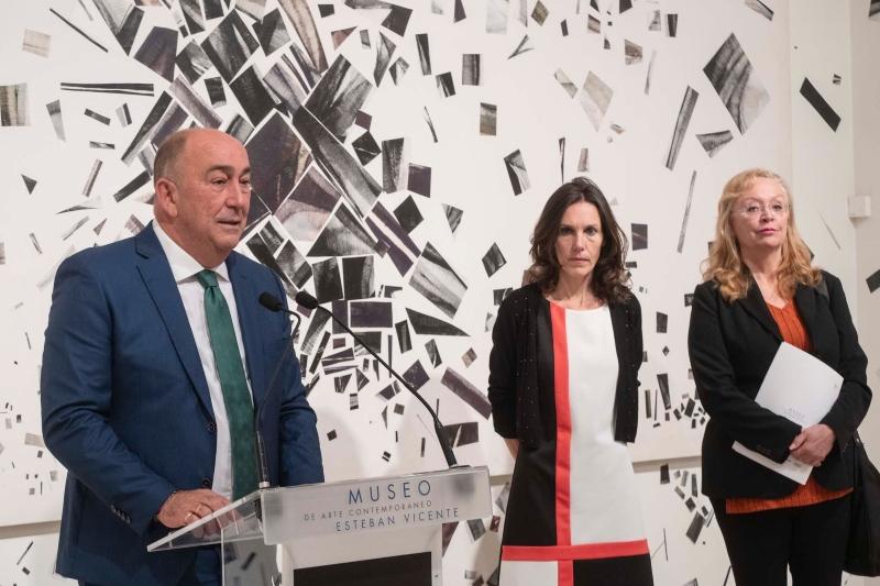 El Museo de Arte Contemporáneo Esteban Vicente inicia una nueva línea expositiva, que va a abarcar las próximas cuatro temporadas, y que tiene como referente a ‘Mujeres artistas en la España contemporánea’. Bajo ese paraguas llega la primera muestra, que tiene como protagonista a la segoviana Fuencisla Francés y a sus ‘Procesos, ritmos y vibraciones’. Una exposición que se puede disfrutar, con entrada gratuita, hasta el 19 de enero de 2025 y en cuya presentación han participado el presidente de la Diputación, Miguel Ángel de Vicente; la directora conservadora del museo, Ana Doldán; y la comisaria de la exposición, Margarita Aizpuru.