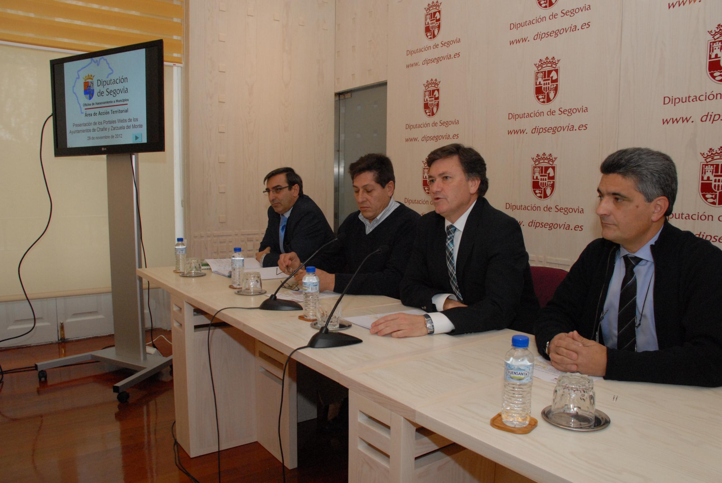 El presidente de la Diputación Provincial de Segovia, Francisco Vázquez, acompañado por los alcaldes de Chañe, Dionisio García, y de Zarzuela del Monte, Mariano Mesonero, además de por el diputado de Acción Territorial, José Luis Sanz Merino, ha presentado hoy las nuevas sedes electrónicas de ambos municipios.