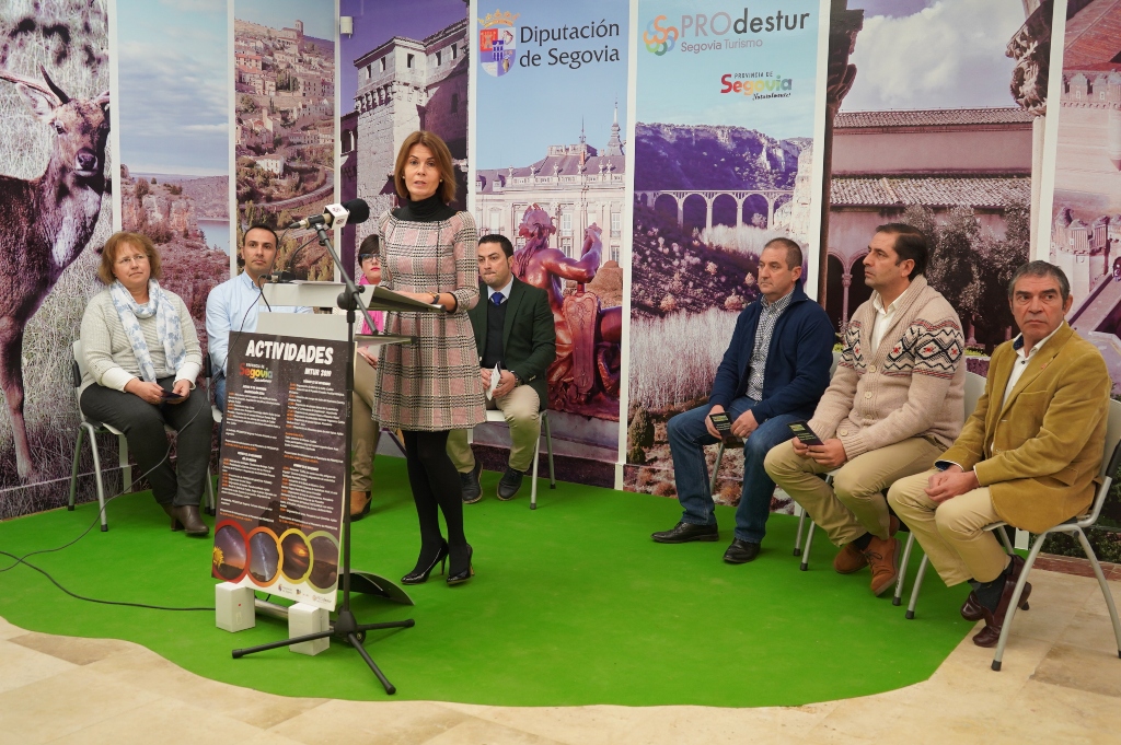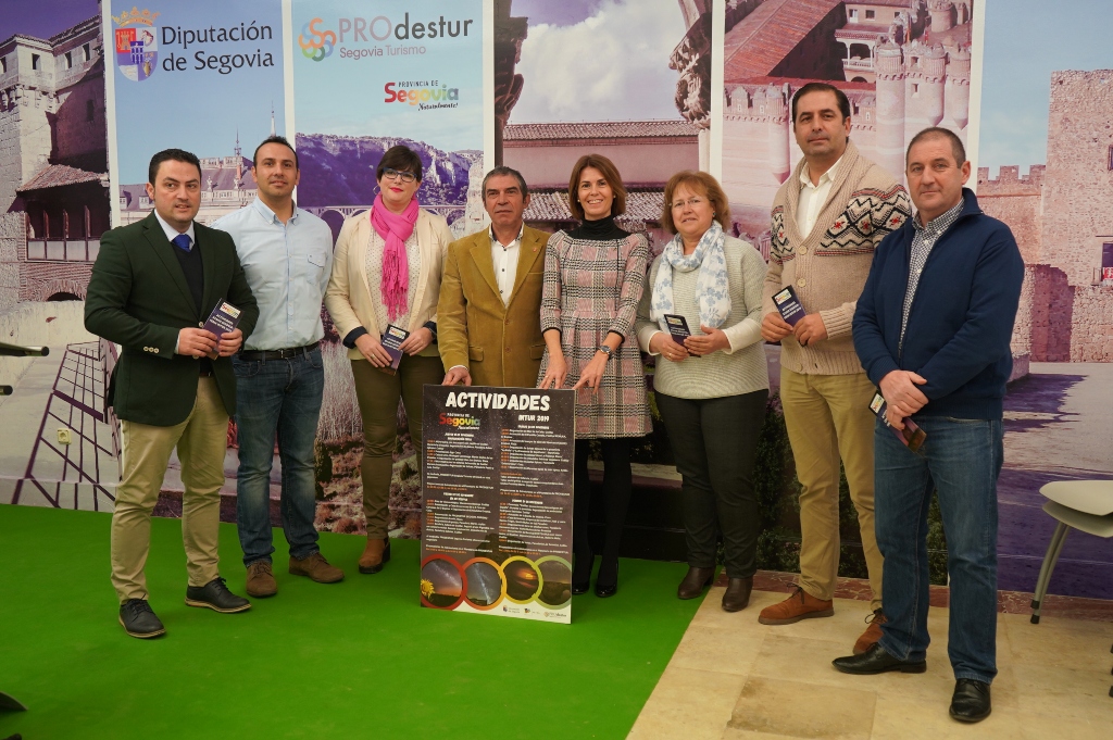 La diputada de Prodestur ha dado a conocer las diferentes propuestas que han sido programadas, acompañada de los alcaldes de Ayllón, Coca, Cuéllar, El Espinar, Martín Muñoz de las Posadas, Riaza y Sepúlveda; municipios con los que se ha firmado un convenio para llevar a cabo acciones conjuntas durante la feria, que puedan contribuir a difundir la oferta turística de estas localidades. De este modo, éstos tendrán una presencia destacada en el stand de 154 m2 con el que contará el organismo de Turismo de la institución provincial, en el que el principal atractivo será un pequeño planetario donde los visitantes podrán hacerse una idea de cómo se ve el universo desde los rincones de la provincia, a través de dos proyecciones audiovisuales de doce minutos, que se sucederán cada veinte minutos.