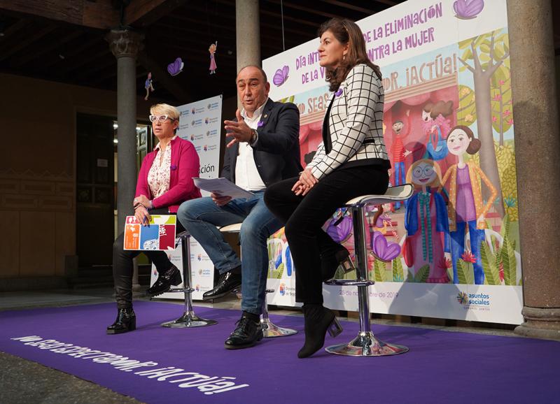 Según ha anunciado el presidente de la Diputación, Miguel Ángel de Vicente, quien ha dado a conocer el programa de actividades junto a la diputada Azucena Suárez y a la jefa del Servicio de Asuntos Sociales, María del Mar Martínez, este año la campaña está centrada en hacer hincapié sobre la necesidad de la sociedad de actuar frente a situaciones de desigualdad o abuso. "Ya el año pasado cambiamos el discurso de las campañas para no dirigirnos a las víctimas de la violencia de género, porque creemos que quien debe concienciarse sobre este asunto es el resto de la sociedad, y de forma especial los hombres, que son los principales agresores", ha señalado el presidente de la institución provincial, añadiendo que "en esta ocasión hemos querido abrir ese abanico de personas a las que hacer llegar el mensaje, y nos hemos centrado en aquellas que, ante situaciones de este tipo, no reaccionan". El lema escogido para este 2019 es claro en ese sentido: ‘No seas espectador. ¡Actúa!', y tal y como explicaba De Vicente, "pretende implicarnos a todos para que no nos quedemos mirando, mientras a nuestro alrededor decenas de mujeres son asesinadas cada año; tenemos que movernos, denunciar y seguir buscando la manera de conseguir que cualquier comportamiento violento, físico o verbal, no quede impune".