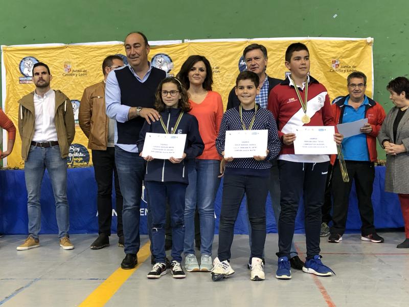 Abrazos, sonrisas, muchas felicitaciones por parte de amigos y familiares, cansancio, alegría, nervios y emoción eran algunas de las sensaciones que llenaban esta mañana el Frontón Segovia pasadas las 13:15 horas. Con una mesa repleta de medallas presidiendo la cancha del pabellón y diversas autoridades segovianas, entre las que se podía ver, entre otros, al presidente de la Diputación, Francisco Vázquez, y al vicepresidente de la institución provincial y diputado del Área de Asuntos Sociales y Deportes, Miguel Ángel de Vicente, además de alcaldes y concejales de distintas localidades, entre ellas la capital, ultimando la organización de la entrega de medallas, el polideportivo acogía el acto de reconocimiento a los campeones de los Juegos Escolares.